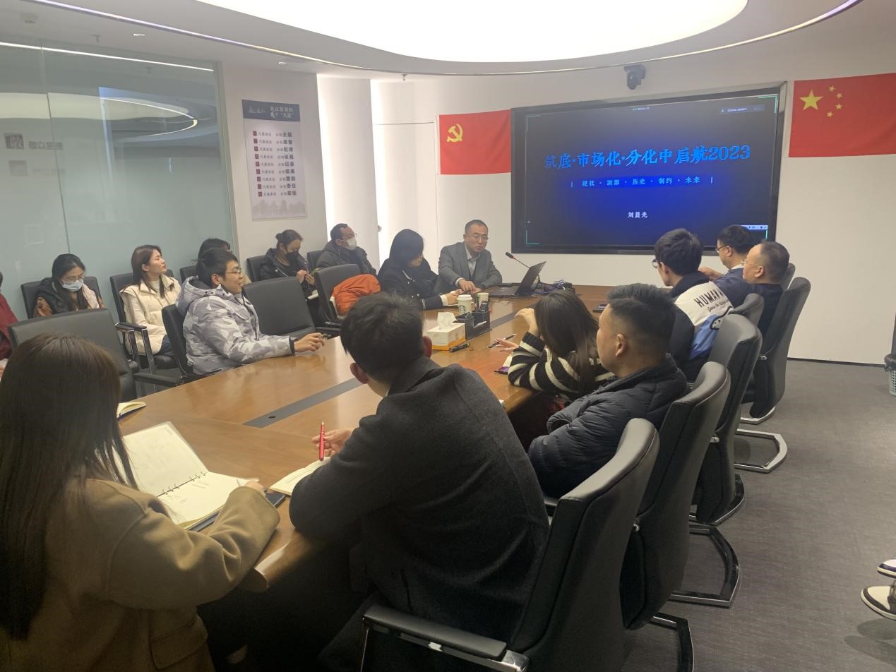 為更好認(rèn)識房地產(chǎn)變局之下行業(yè)發(fā)展現(xiàn)狀及預(yù)期,切實提升行業(yè)知識水平,明確2023年公司投資業(yè)務(wù)的發(fā)展方向,2月24日下午,盛和房產(chǎn)組織召開《行業(yè)總結(jié)與市場研判》分享交流會。特邀資深戰(zhàn)略定位與管理咨詢專家——上??硕鹦畔⒓夹g(shù)有限公司企業(yè)戰(zhàn)略部總經(jīng)理劉晨光作專題輔導(dǎo)。盛和房產(chǎn)及全資、控股子公司全體員工參加。